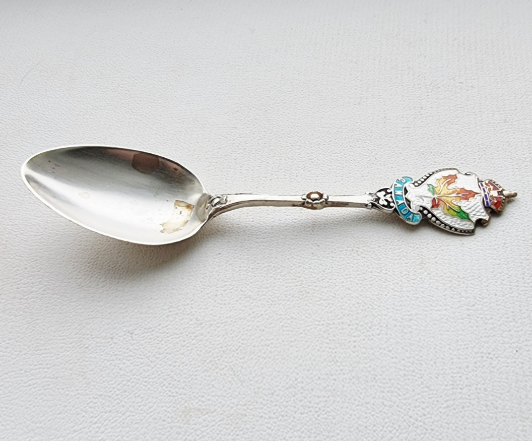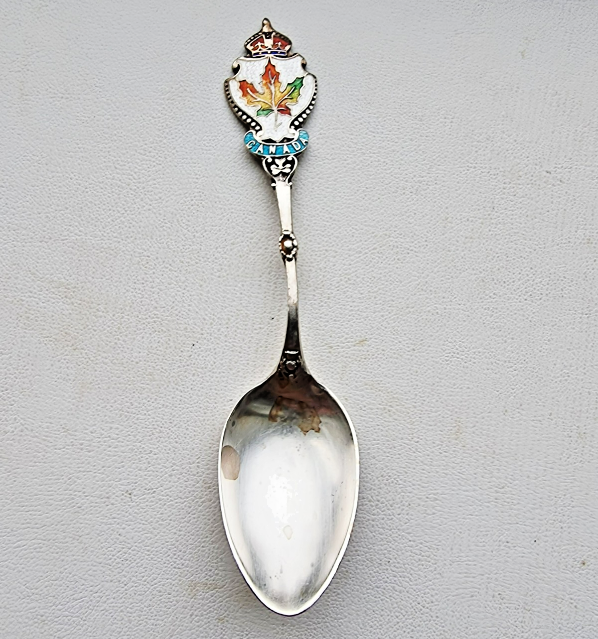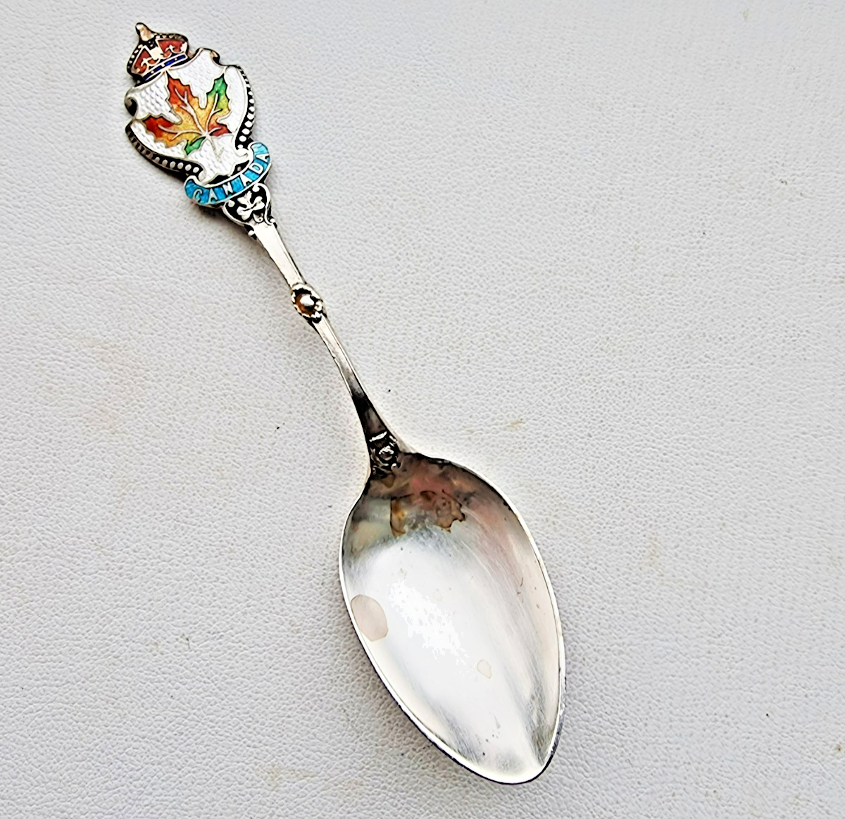 - VINTAGE 925 STERLING SILVER CANADA ENAMEL PLATED SOUVENIR COLLECTIBLE SPOON