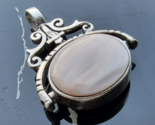 This vintage 925 sterling silver pendant features a beautiful natural black onyx stone with mother of pearl/abalone accents. Signed by the maker, this charm pendant is crafted with a sterling silver base metal and has a metal purity of 925. The oval-shaped onyx stone showcases a striking black and pink color, making it a unique and elegant piece of fine jewelry for those who appreciate beauty and charm.
