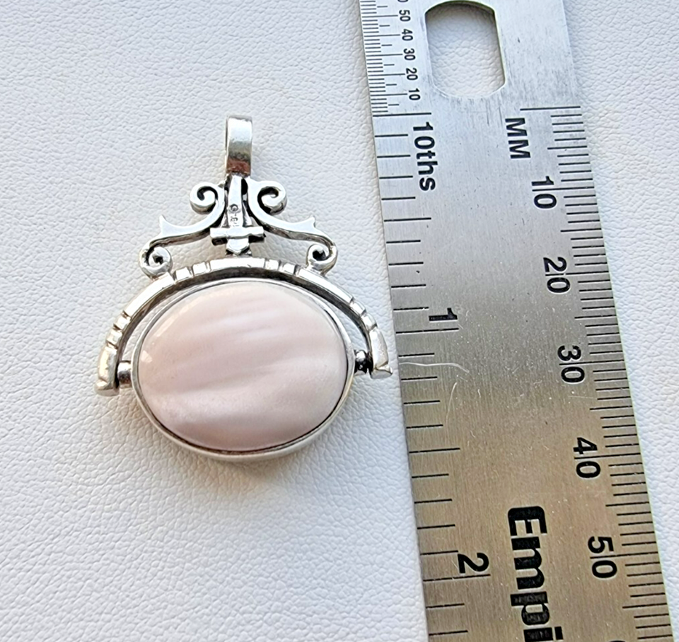 VINTAGE 925 STERLING SILVER NATURAL BLACK ONYX AND ABALONE BILATERAL PENDANT