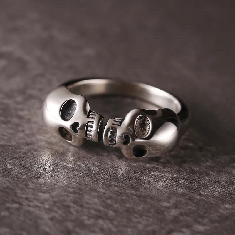 - Vintage 925 Sterling Silver Retro Skeleton Skull Ring