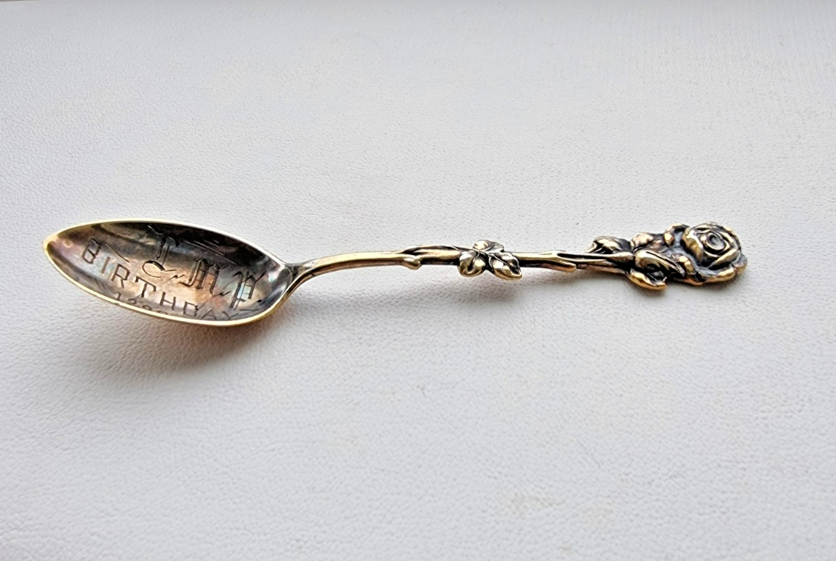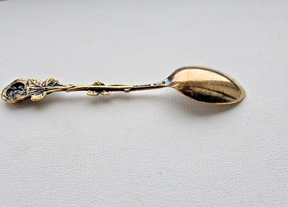 - VINTAGE 925 STERLING SILVER ROSE PATTERN SOUVENIR COLLECTIBLE SPOON 4in