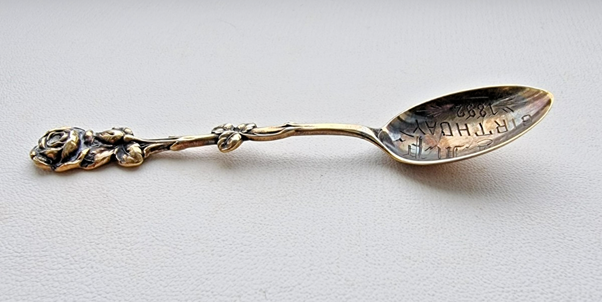 VINTAGE 925 STERLING SILVER ROSE PATTERN SOUVENIR COLLECTIBLE SPOON 4in