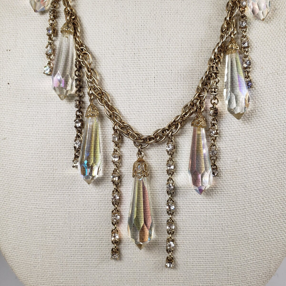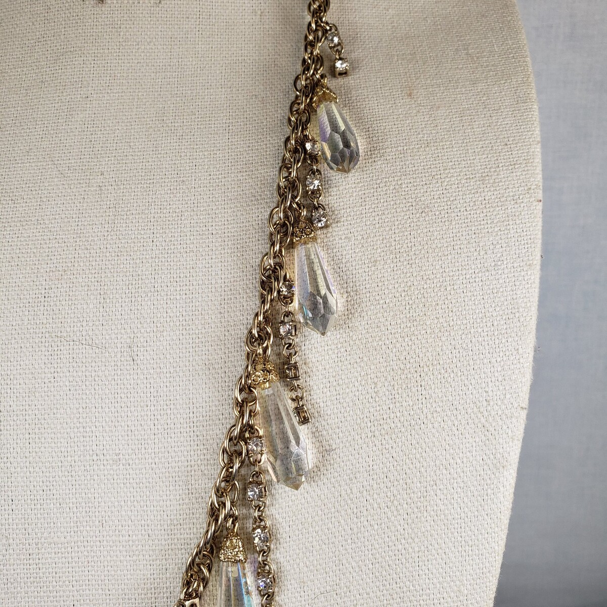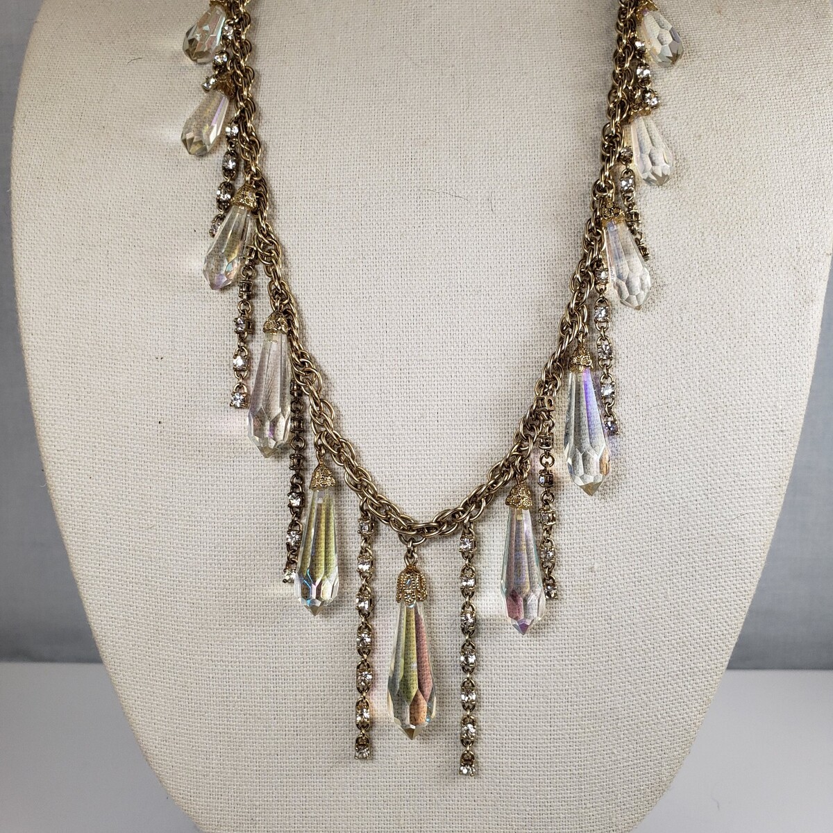 Vintage ANN Taylor Aurora Borealis Bead Dangle Prizm Crystal Gold Tone Necklace