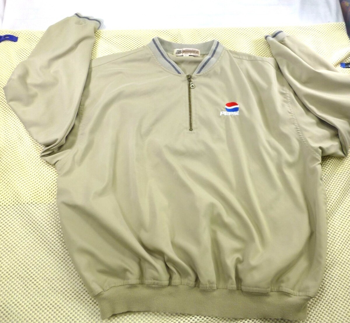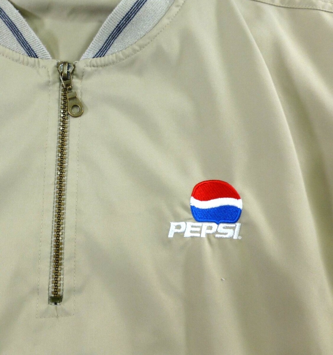 - Vintage Akwa Pepsi Beige Pullover Jacket Large USA Made Microfiber Ribbed Trim