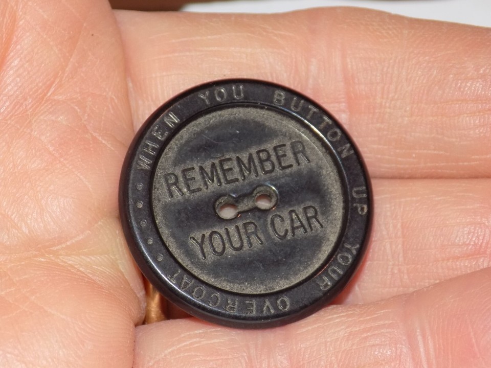 across. One side states, ? When You Button Up Your Over Coat Remember Your Car?