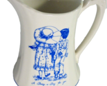 Description: Vintage 1974 pitcher with picture of boy and girl walking hand and hand. "A Daisy a Day For You in cursive text. Crownford China Co.