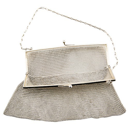Mail a chaîne en maille argentee allemande vintage Embrayage grave / Flapper a main Era Gatsby