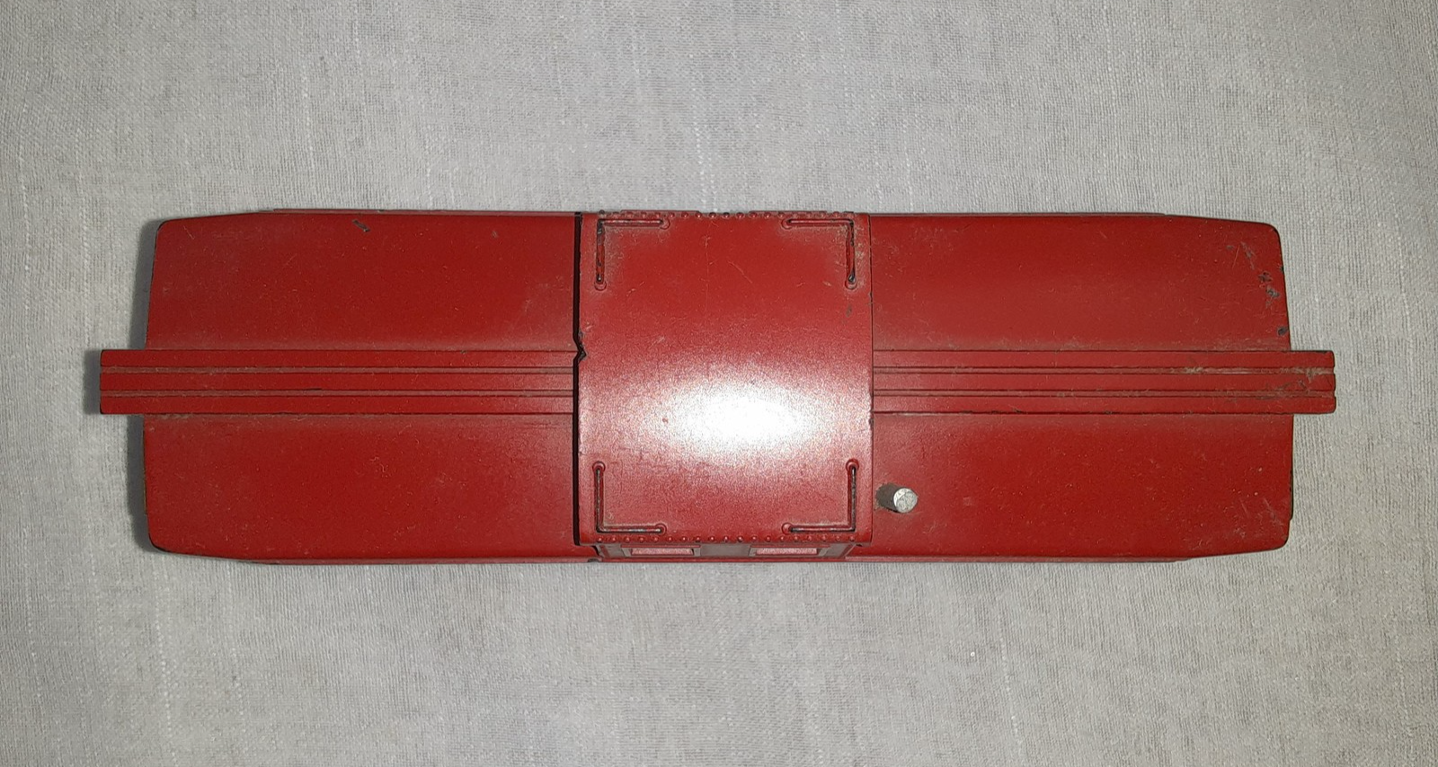 This is a vintage American Flyer Lines No. 938 Train Caboose. It is red with one knuckle coupler. There are some places on the body where the paint has worn off and there is a small chip in the cupola of the roof, but otherwise it is in good condition. There is no box for this car. It will need cleaned.
