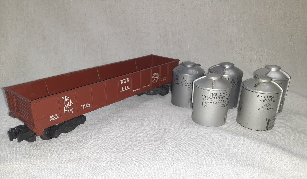- Vintage American Flyer No.916 D&H Gondola w/ Canisters, Red, Knuckle Couplers
