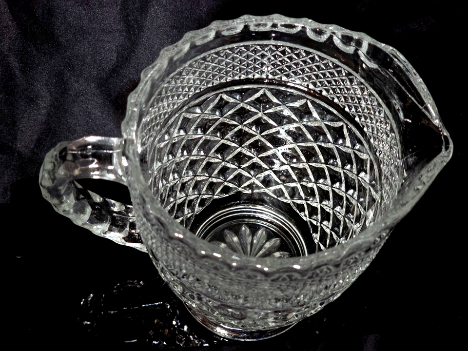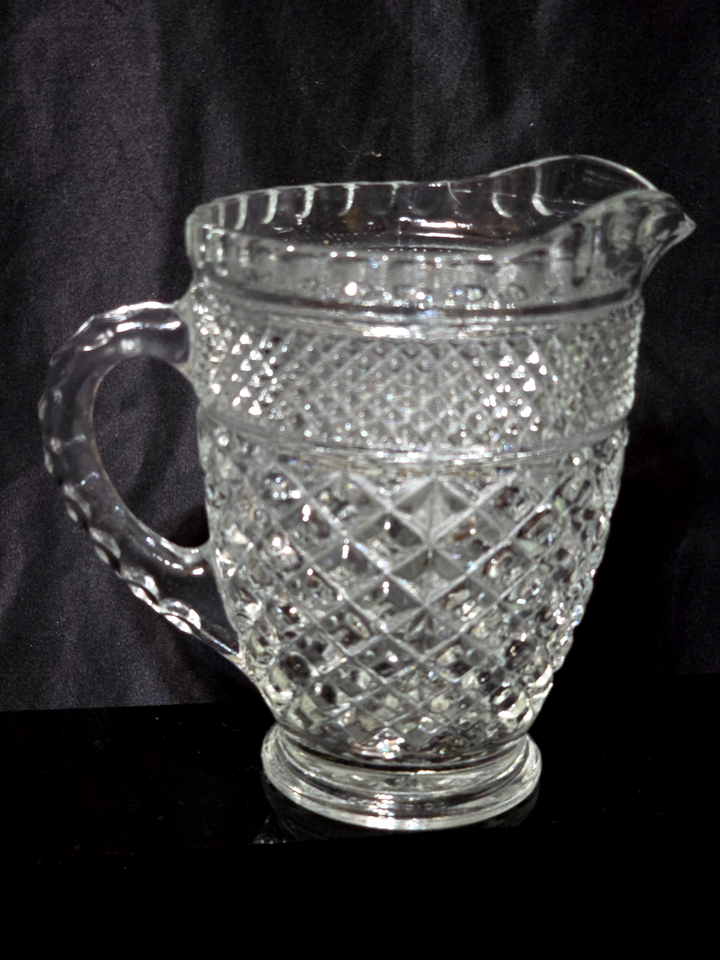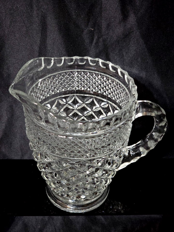 - Vintage ANCHOR HOCKING Cut Glass WEXFORD Diamond Pattern Clear Pint Pitcher 5.5"