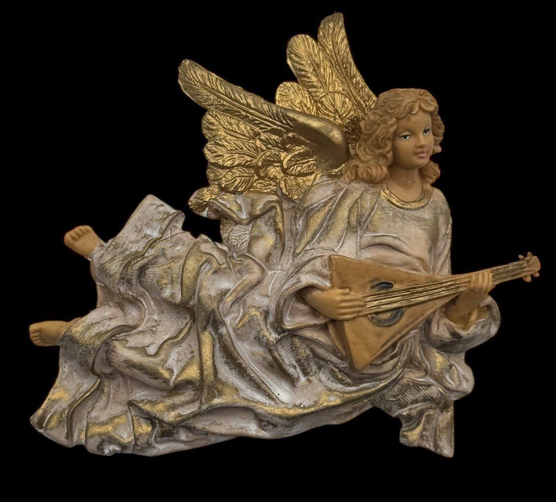 - Vintage Angel with Lute Wall Hanging Ornament Signed Italy 4988 Gold Wings