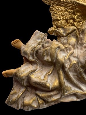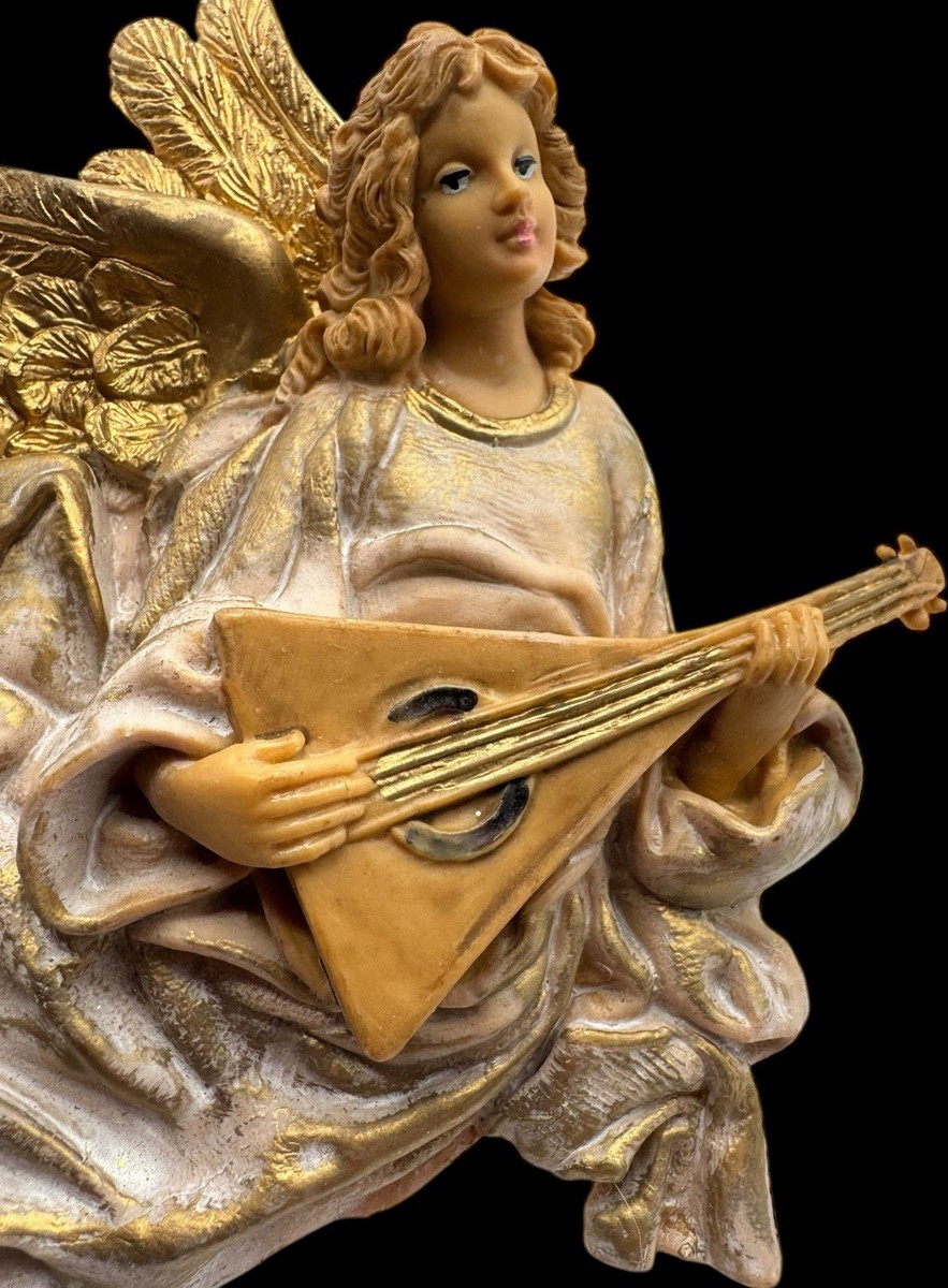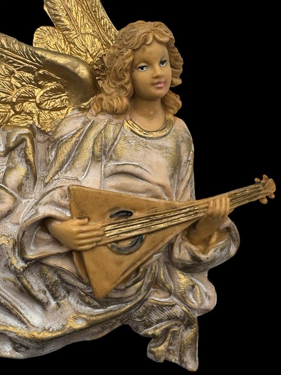 Vintage Angel with Lute Wall Hanging Ornament Signed Italy 4988 Gold Wings