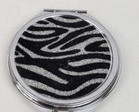 - Vintage Animal Print Silver Tone w/ Black Compact 2.25 Inch Round