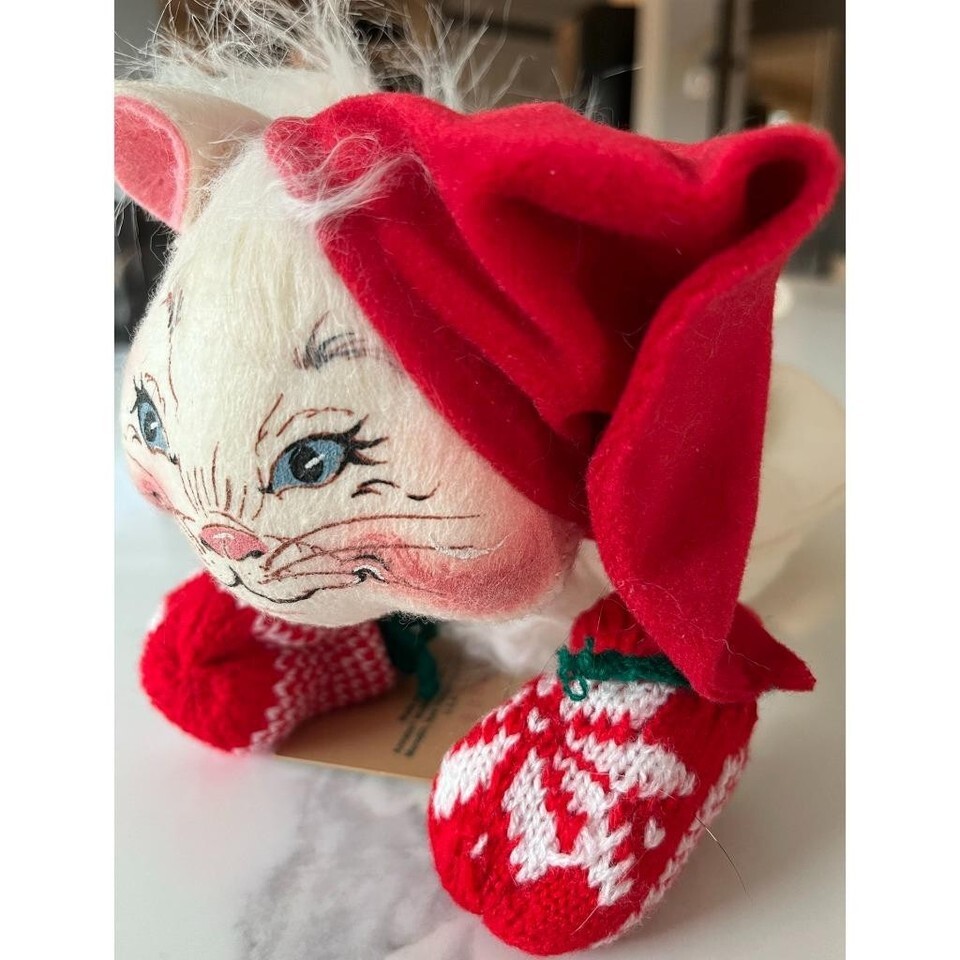 - Vintage Annalee Christmas White Kitten Laying Down with Pink Paw Pad Collectible