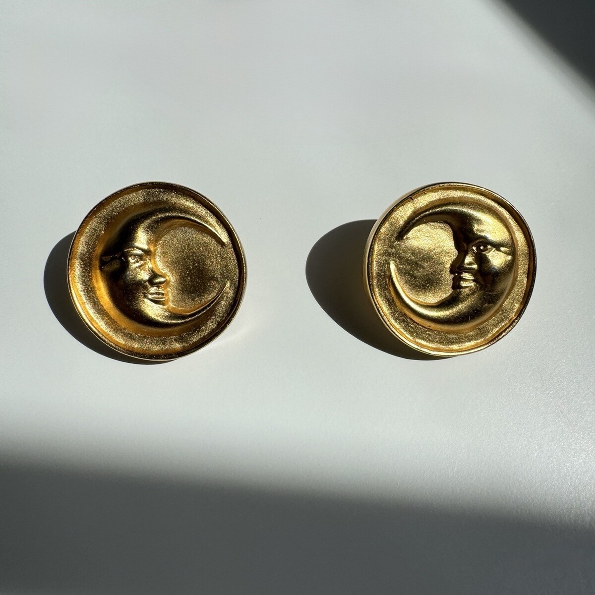 - Vintage Anne Klein Gold Crescent Moon Round Earrings