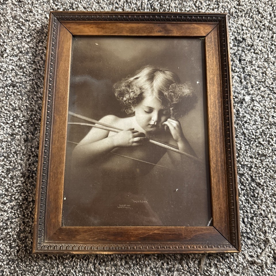 Vintage Antique Cupid Asleep by M.B. Parkinson Framed Photograph