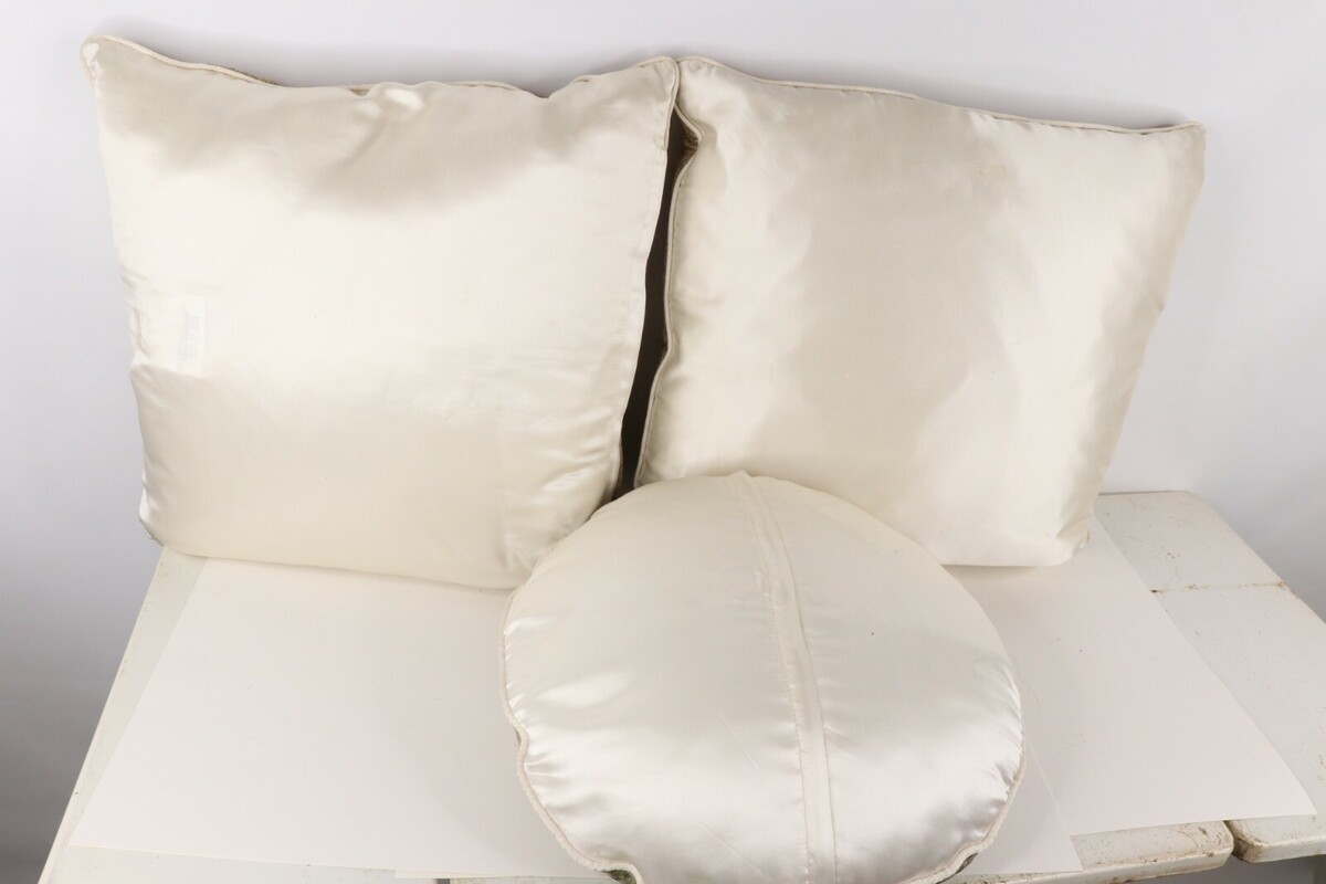 Vintage Antique Lot of 3 Satin Embroidered Finch Bird Floral Throw Pillows 16x16