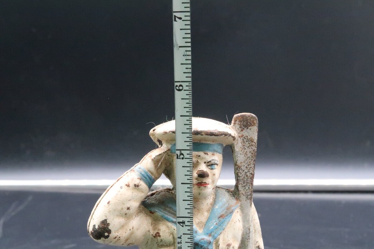 - Vintage Antique Military Navy Sailor Saluting Oarsman Cast Iron Coin Bank 5.5"