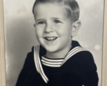 Vintage Antique Portrait Photo Little Sailor Boy 6.5" x 4.5" In Frame Card B&W