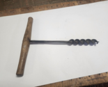 - Vintage/Antique Unbranded 14" x 17" T Handle Wood Auger 1-1/4" Dia Bit.
