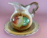 - Vintage Arrow Pitcher and Bowl Japan 4in Apple Grapes Porcelain