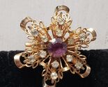 Vintage Gold Tone Purple Clear Crystal Rhinestone Floral Filigree Leaf Starburst Brooch