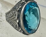 Vintage Art Deco Ring size 4.25 Ocean Blue Glass sterling silver pinky women