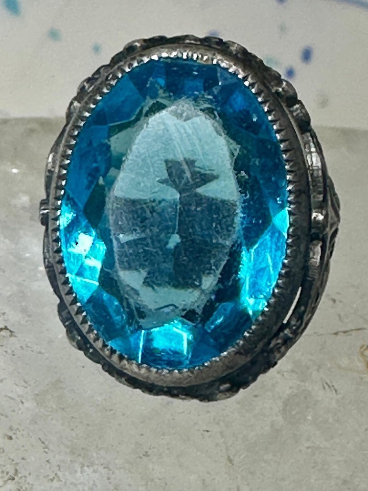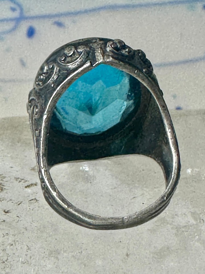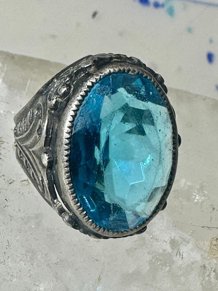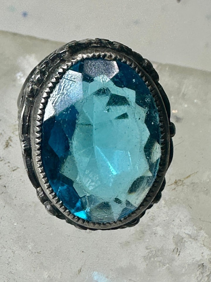 - Vintage Art Deco Ring size 4.25 Ocean Blue Glass sterling silver pinky women