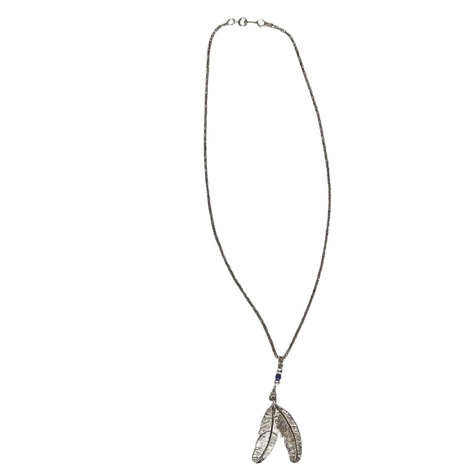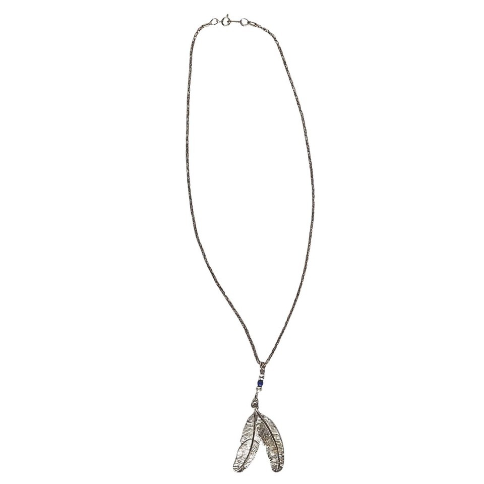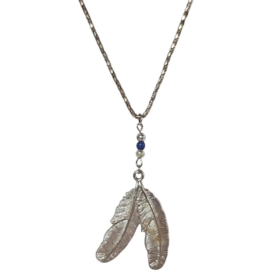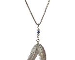 - Vintage Art Deco Silver Tone Two Feather Pendant Drop Dangle Indian Necklace