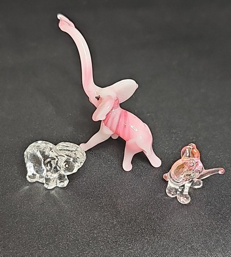 - Vintage Art Glass Animal Figures Mini Hand Blown Lot of 3 Elephants Japan