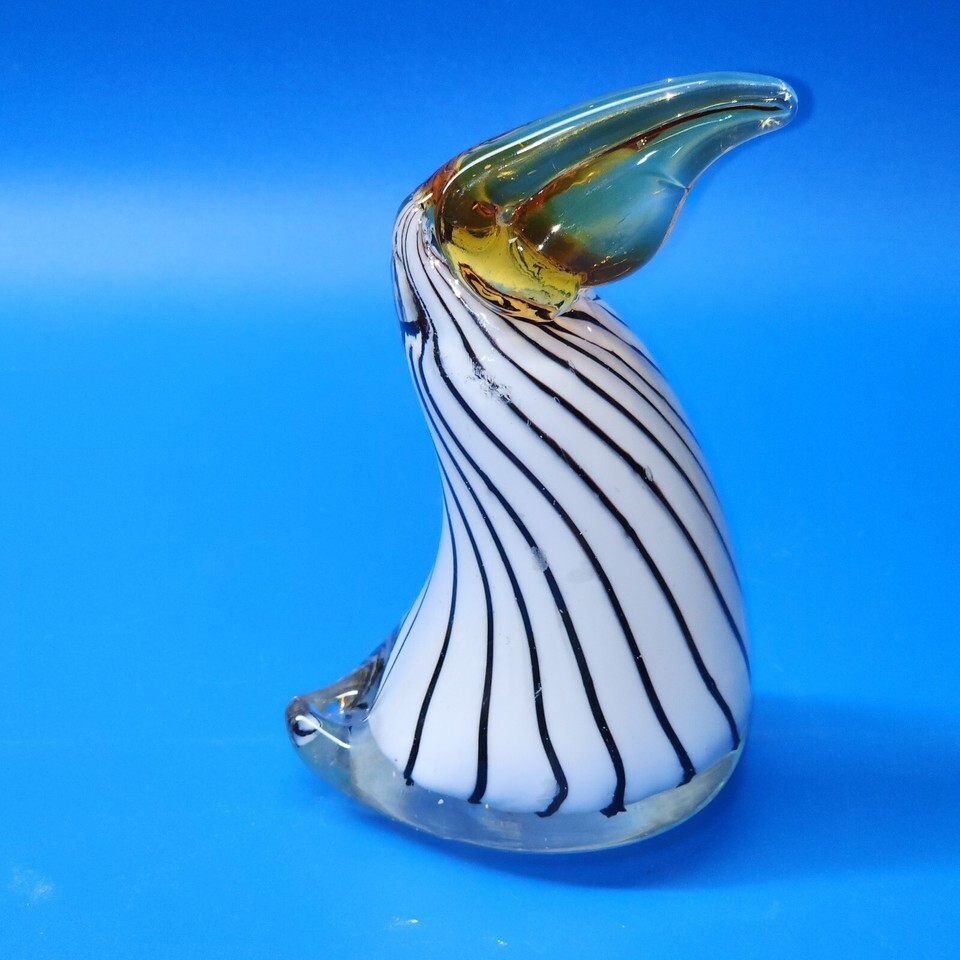 - Vintage Art Glass Toucan Pelican - MURANO / Murano Style Sculpture Black Swirl