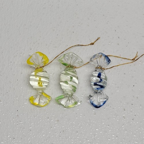 - Vintage Art Glass Yellow Green Blue Swirl Wrapped Candy Ornaments