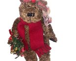 - Vintage Articulated Jointed 11” Teddy Bear Bean Bag Body Christmas Wreath Scarf