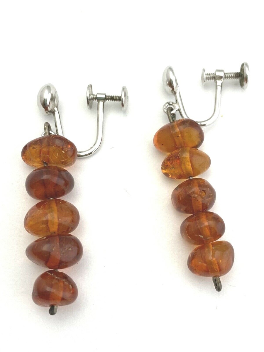 - Vintage Artisan Amber Drop Earrings, Screw-On