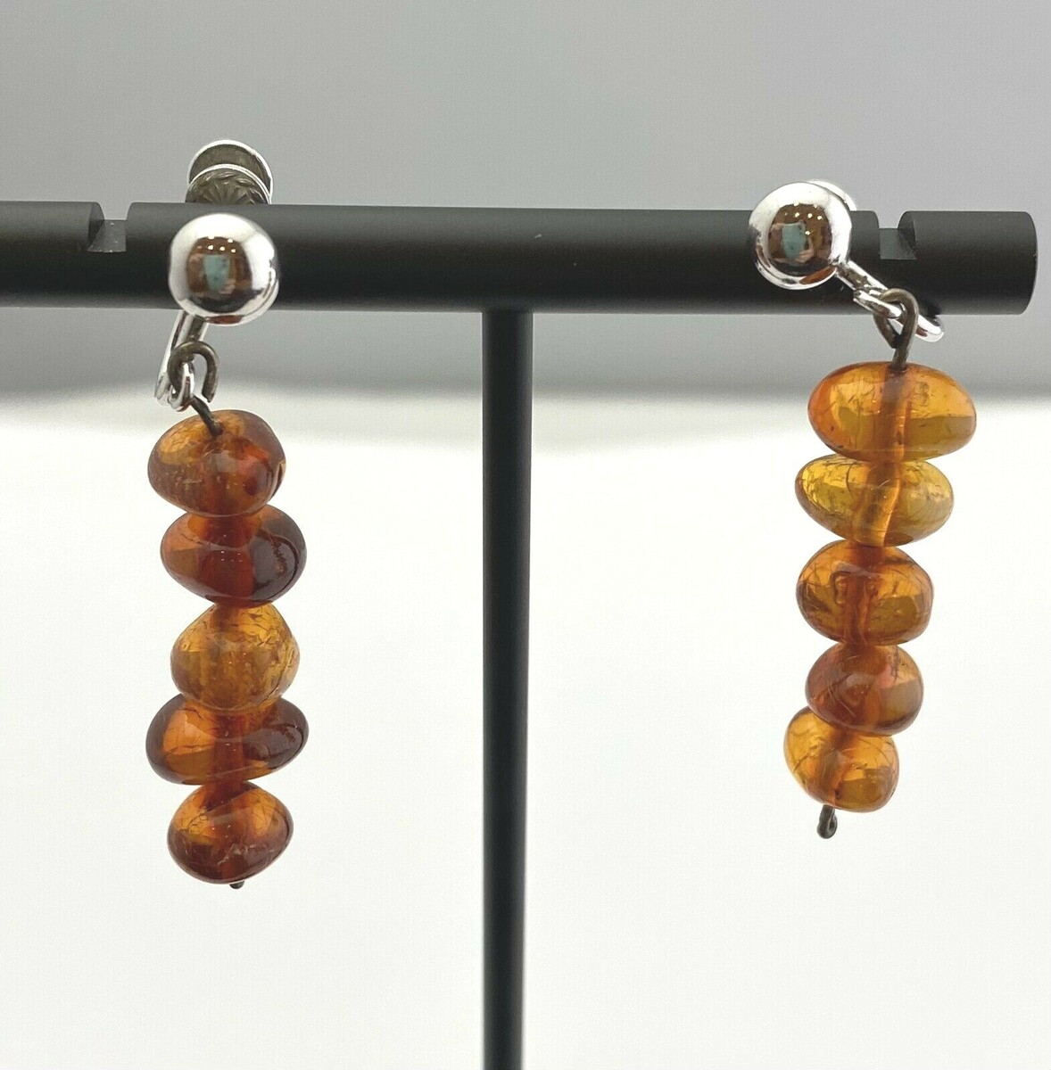 Vintage Artisan Amber Drop Earrings, Screw-On