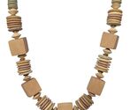 - Vintage Artisan Wood Bead Necklace Cube Disc Hex Beads Bohemian Style Jewelry