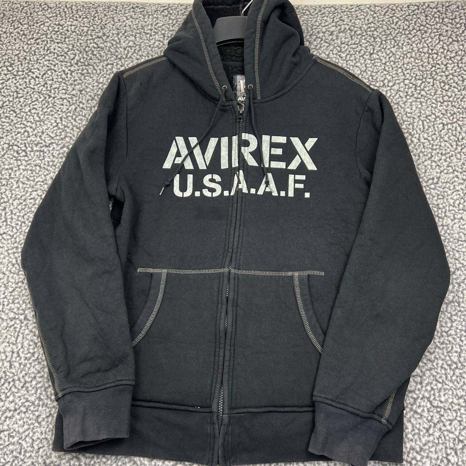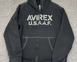 - Vintage Avirex Hoodie Men Medium Black Military Fleece Full Zip Long Sleeve M