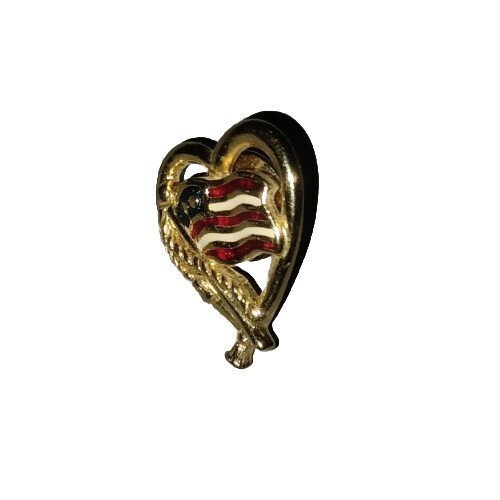 - Vintage Avon Goldtone Heart Flag Pin Brooch Tack Patriotic Accessory USA Jewelry