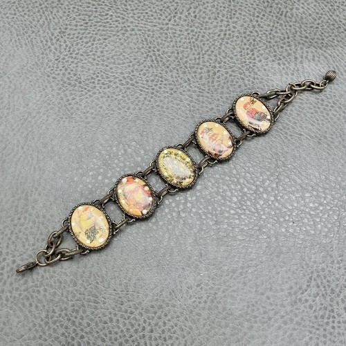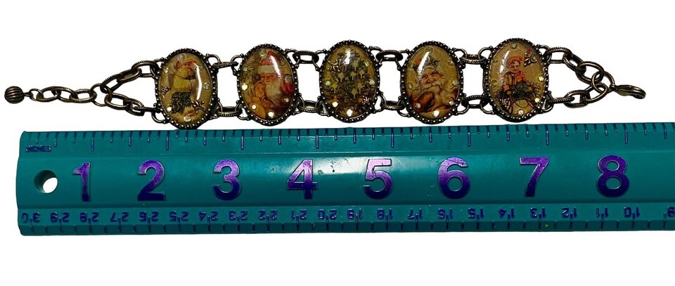 - Vintage Avon Victorian Christmas Bracelet Oval Link Chain Santa Cabochon Style