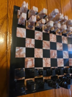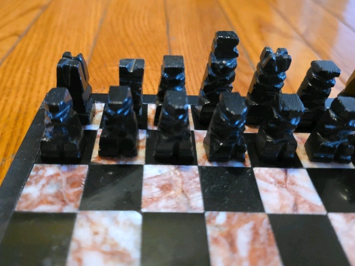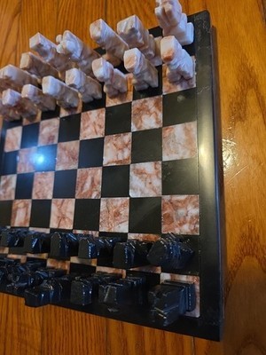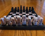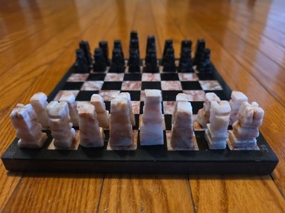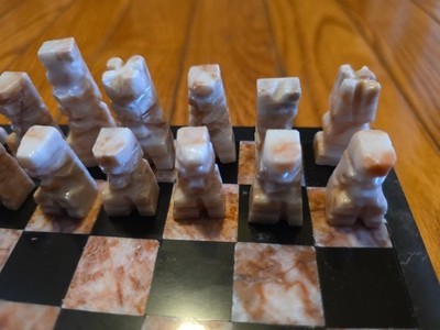 - Vintage Aztec Hand Carved Onyx and Marble Mini Chess Set and Board
