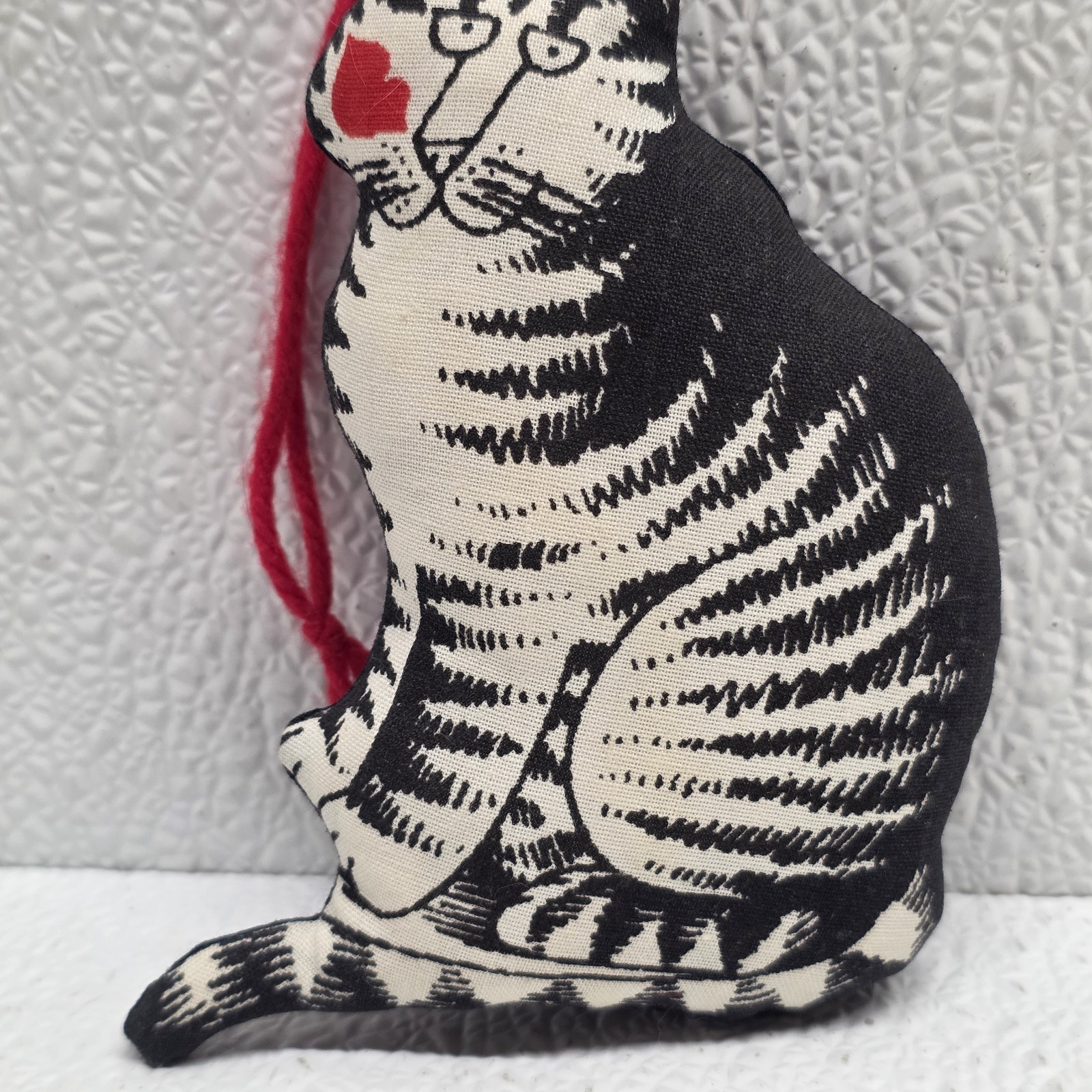 Vintage B.Kliban Love a Cat Red Kiss Fabric Plush 5" Ornament. Images show actual item that will ship.