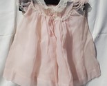 - Vintage Baby Button Smock Dress Pink Lace Ruffle Short Sleeve Sheer