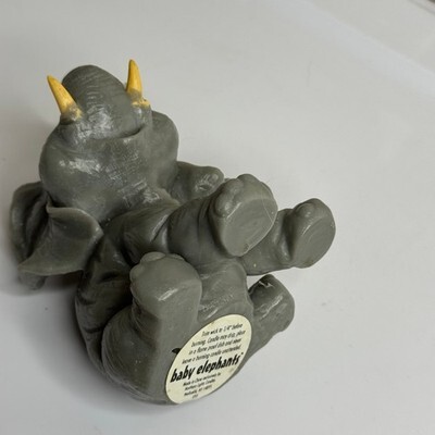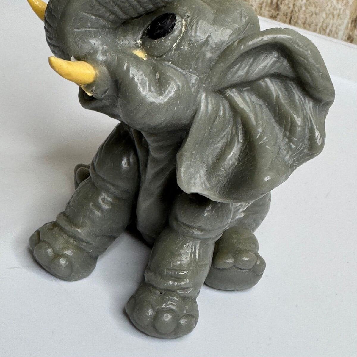 - Vintage Baby Elephant Sitting Candle Gray Tusk Eyes Novelty Gift Wax Unscented