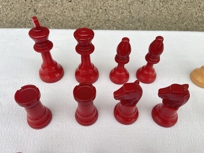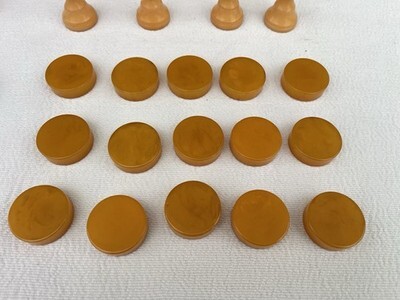 - Vintage Bakelite Staunton Chess Set & 28 Green Butterscotch Backgammon Checkers