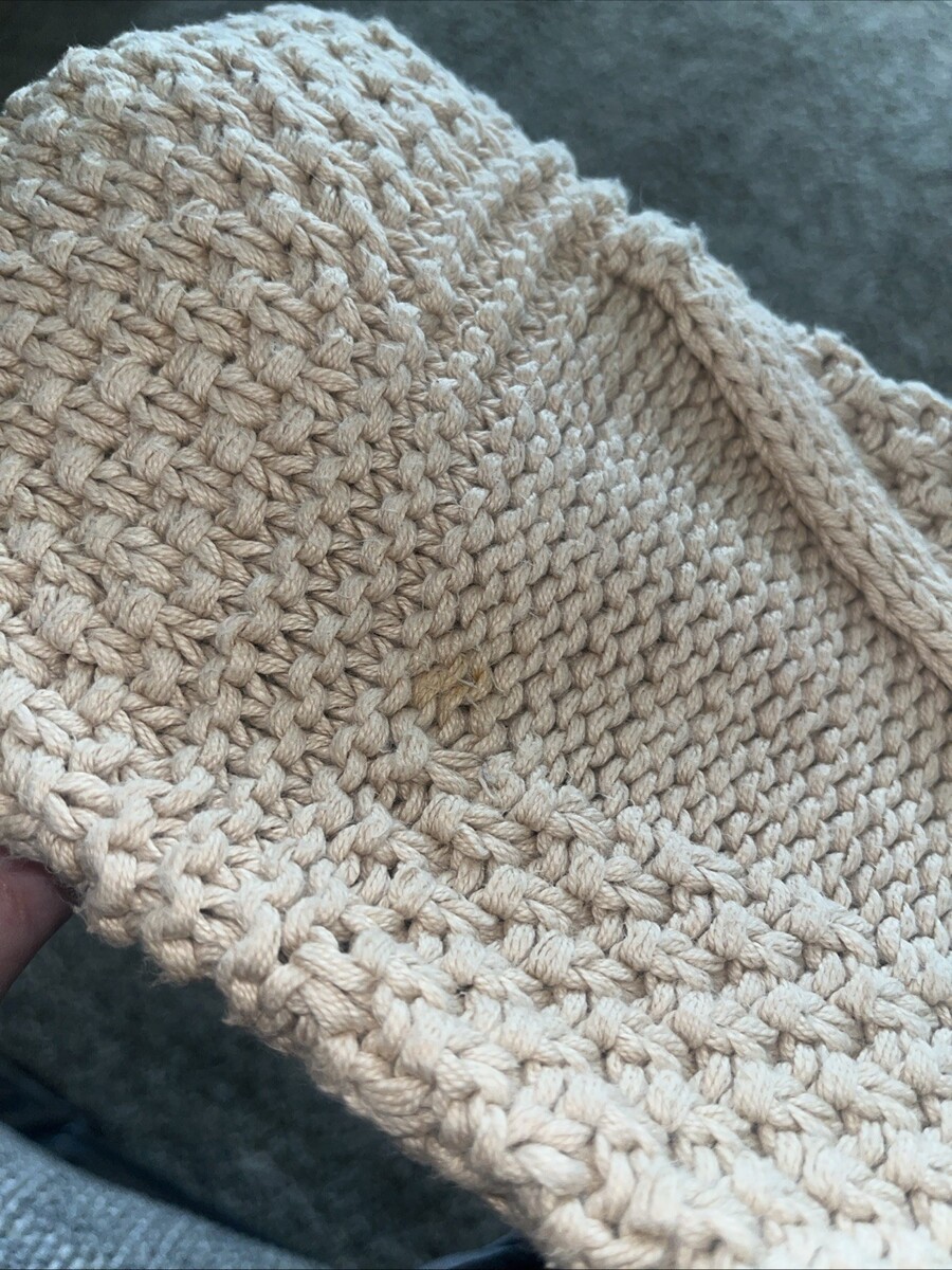There is a small stain on the sleeve, see last photo. Please let me know if you have any questions!