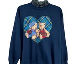 Adorable 1990s-style sweatshirt with playful applique teddy bears framed in a plaid heart. Features a mock layered look with a sewn-in plaid turtleneck?designed to look like two pieces but is actually one cozy sweatshirt. Perfect for a retro cabin vibe, holiday wear, or casual vintage look.