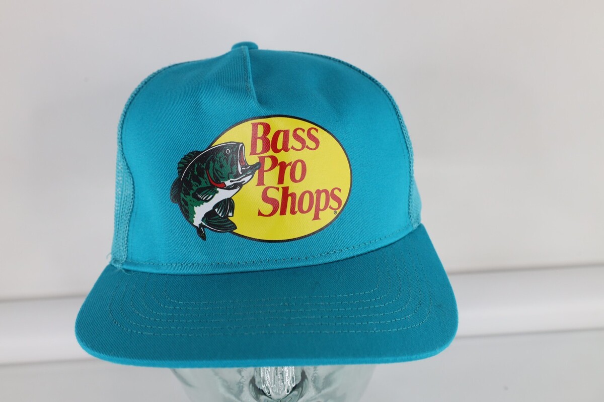 - Vintage Bass Pro Shops Spell Out Fishing Trucker Hat Cap Teal Snapback