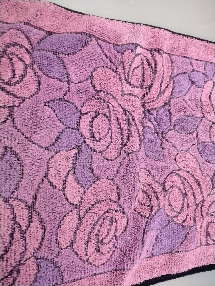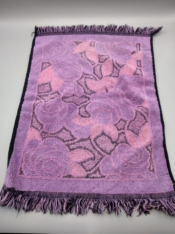 - Vintage Bath Towel Pink Purple Black Sculpted Fringe Whimsygoth Groovy Retro