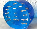 Vintage Beechcraft aviation paperweight was a great find at a former pilot's estate sale. Round blue and clear paperweight has fifteen airplanes suspended in lucite and is engraved: The world is small when you fly a Beechcraft. Excellent condition with normal wear for a vintage item. Measures 3-3/4" high x 3-7/8" wide x 1-11/16" deep.