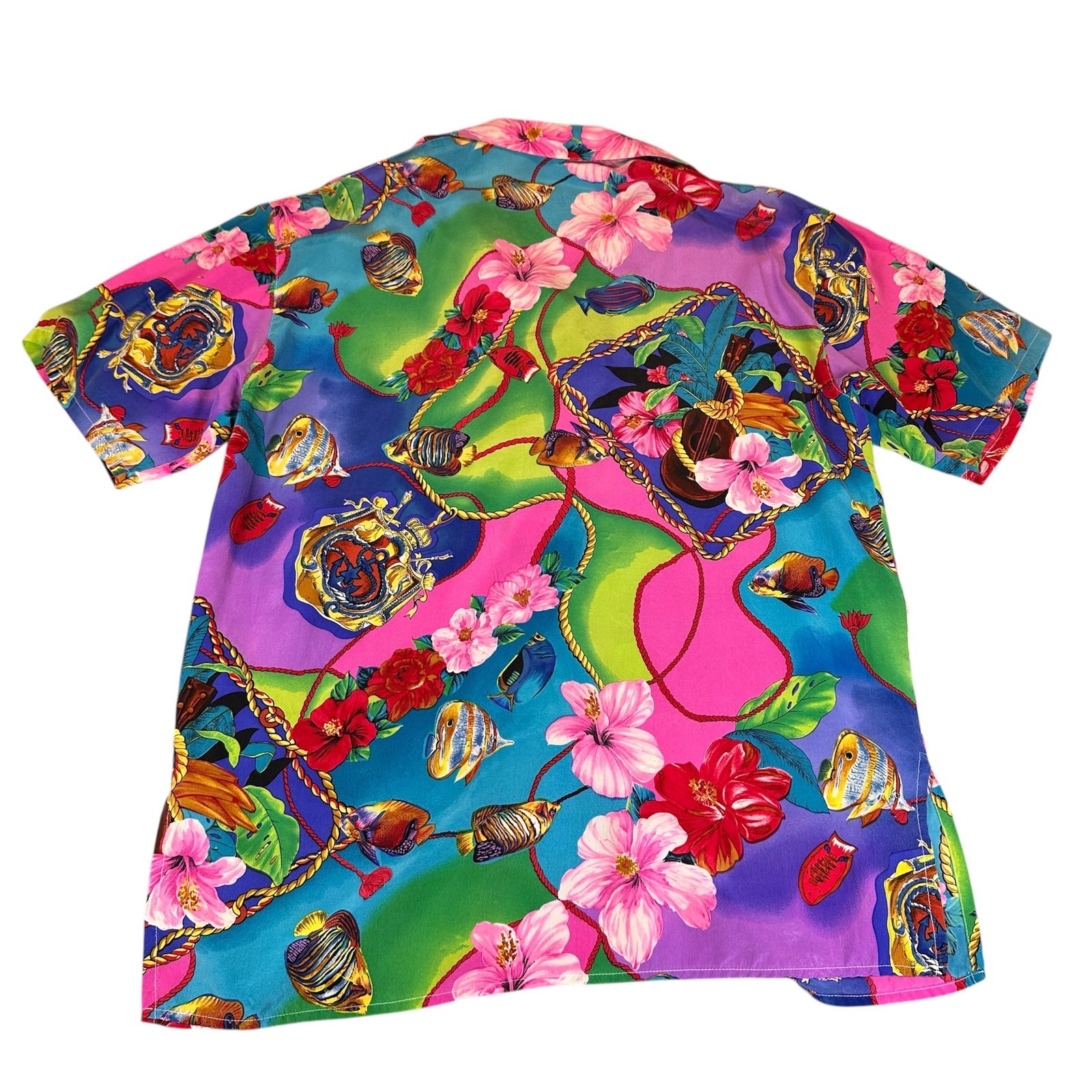 - Vintage Bella Camicie Shirt Womens Small Silk Hawaiian Floral Fish Print 90s